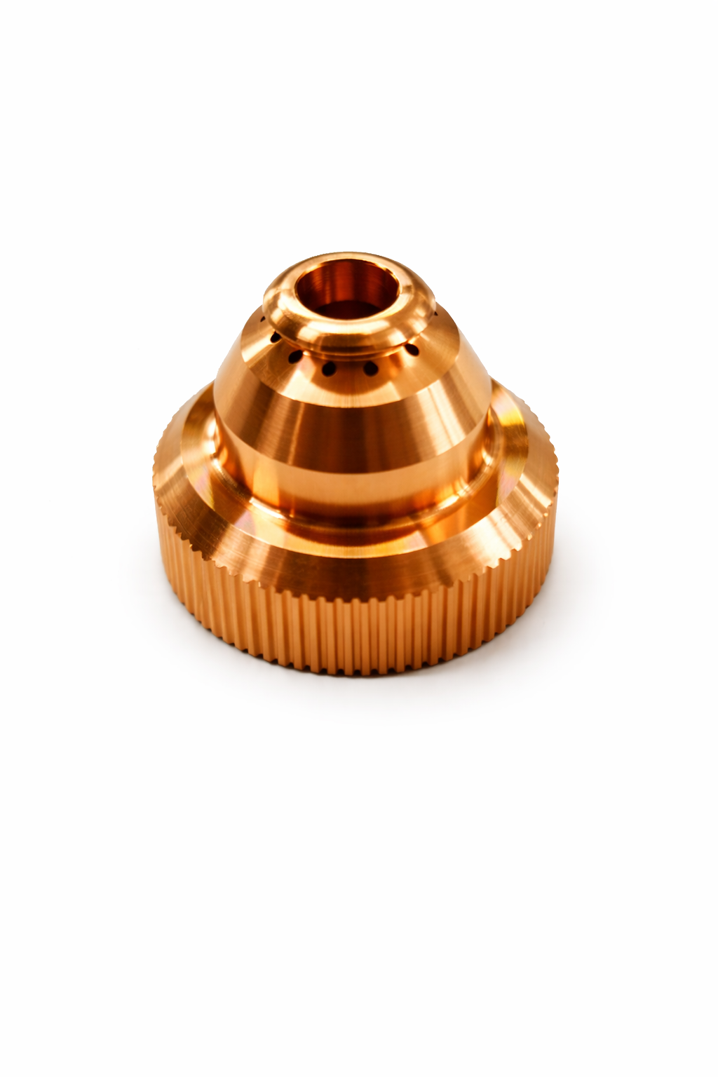 O Bocal de Proteção para Máquina (Machine Shield) da tocha PT-80 é um componente externo de alta resistência, projetado especificamente para operações de corte mecanizado (CNC). Sua função principal é proteger o bico de corte e os demais consumíveis internos contra o calor radiante e, principalmente, contra os respingos de metal fundido que ocorrem durante a perfuração inicial da chapa. Diferente do bocal manual, este modelo possui geometria otimizada para o fluxo de ar de proteção em sistemas automáticos, garantindo a estabilidade do arco e a longevidade da tocha em ciclos de trabalho contínuos.