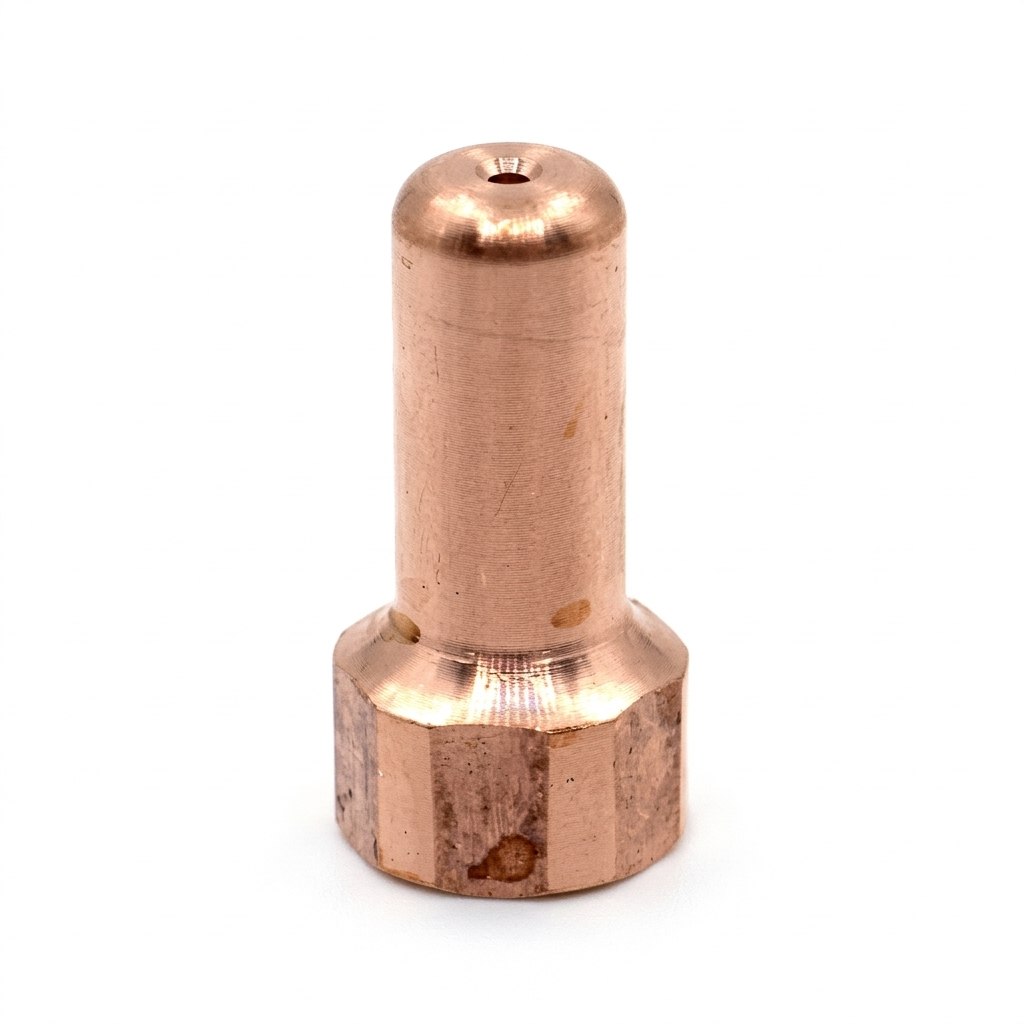 O Eletrodo Plasma PT-80 é um consumível original de alta capacidade, projetado para operar em sistemas de corte de alta potência. Sua função principal é a geração do arco elétrico piloto, servindo como o ponto de ignição central para o processo de plasma. Fabricado com materiais de alta condutividade térmica, ele permite uma transferência de corrente estável e eficiente, garantindo que o arco permaneça focado e constante, o que resulta em cortes mais precisos e uma vida útil estendida para todo o conjunto da tocha.