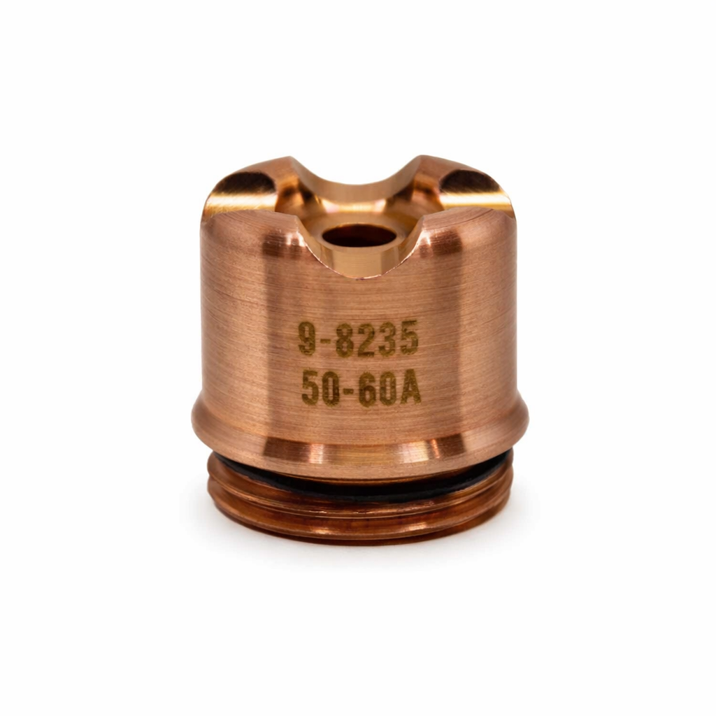 O Bocal de Retenção 9-8235 é um componente essencial para a montagem e fixação do conjunto de consumíveis nas tochas da série OneTorch. Sua função é manter o alinhamento preciso entre o bico, o eletrodo e o cartucho de partida, garantindo que o fluxo de gás e o arco elétrico operem com máxima eficiência. Além da fixação, ele atua como uma barreira de proteção térmica para o corpo da tocha durante o processo de corte.
